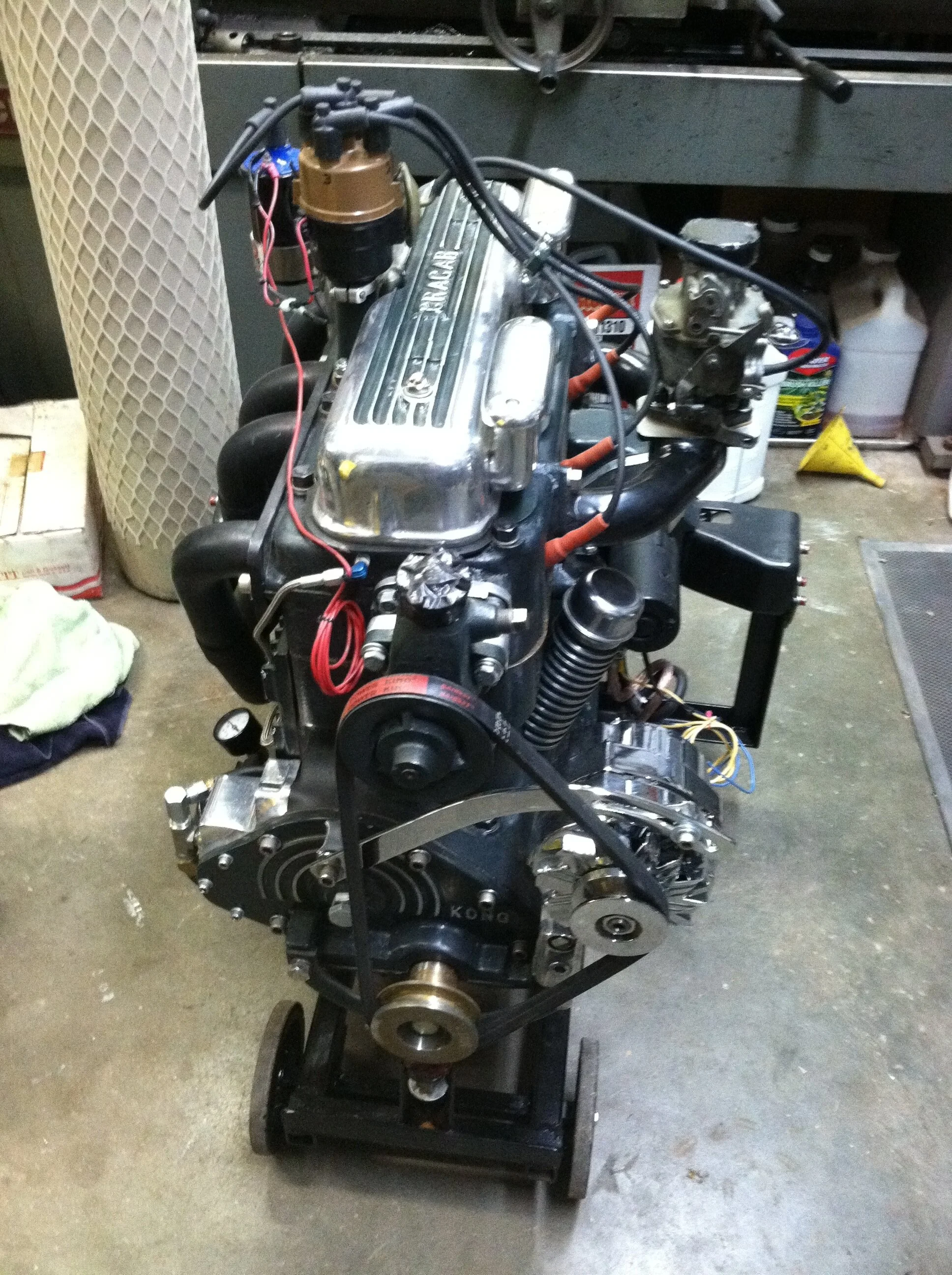 He put two 6-volt Optima batteries under the floor accessible from underneath. And built an 11-gallon aluminum fuel tank on the other side of the drive shaft. He used an aluminum radiator from AFCO and changed the outlets to accommodate the B motor. He eventually repaired an original radiator and installed it.